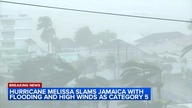 Category 5 Hurricane Melissa brings flooding and catastrophic winds to Jamaica
