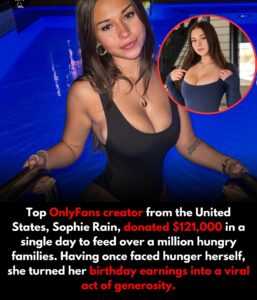 Sophie Rain, one of the highest-earning creators on OnlyFans, made headlines when she donated $121,000 to Feeding America. She pledged to give away all the money she earned in a 24-hour period on her birthday and ended up contributing enough to provide over a million meals to families in need. Sophie shared screenshots of her earnings and the thank-you message she received, saying she felt deeply connected to the cause because she once struggled with food insecurity herself.